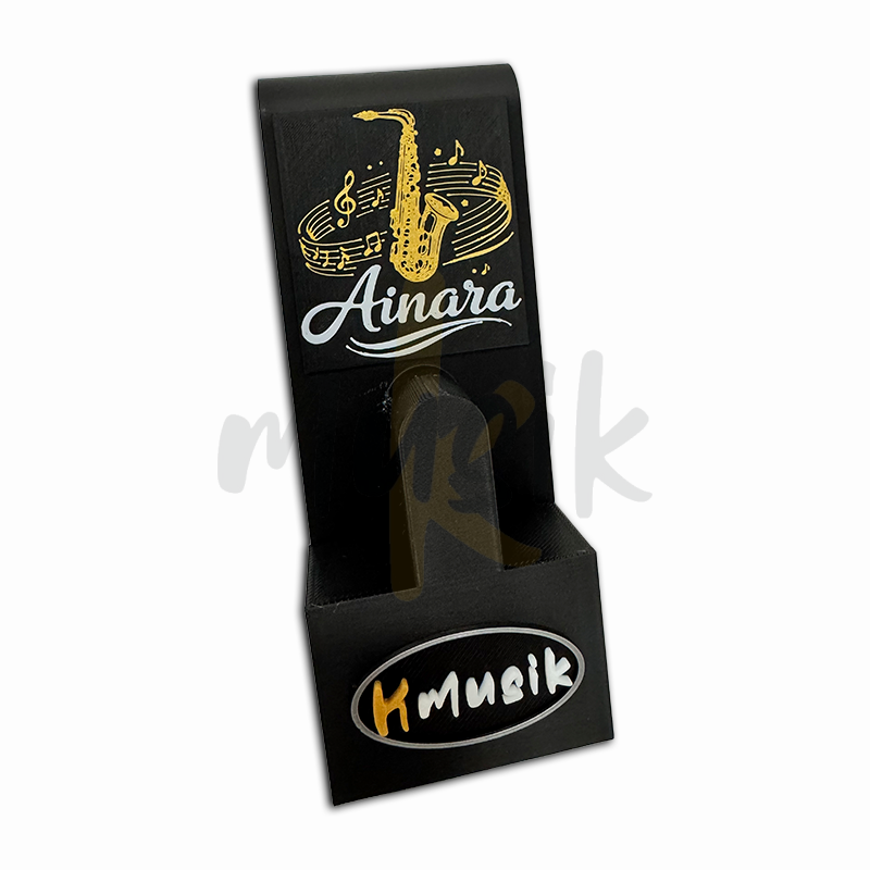 KmusiK combina innovación y diseño para ofrecer un soporte para móvil o tablet resistente, duradero y totalmente personalizable. Puedes añadir escudos, logotipos o diseños propios, creando un atril único adaptado a tu estilo.